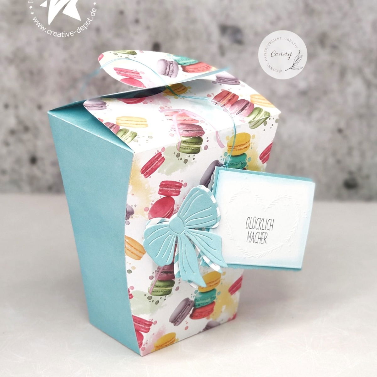Die leicht konische Silhouette verleiht der Box eine elegante Linie, während der Hakenverschluss ein cleveres und zugleich dekoratives Detail ist – ganz ohne zusätzliches Klebematerial.