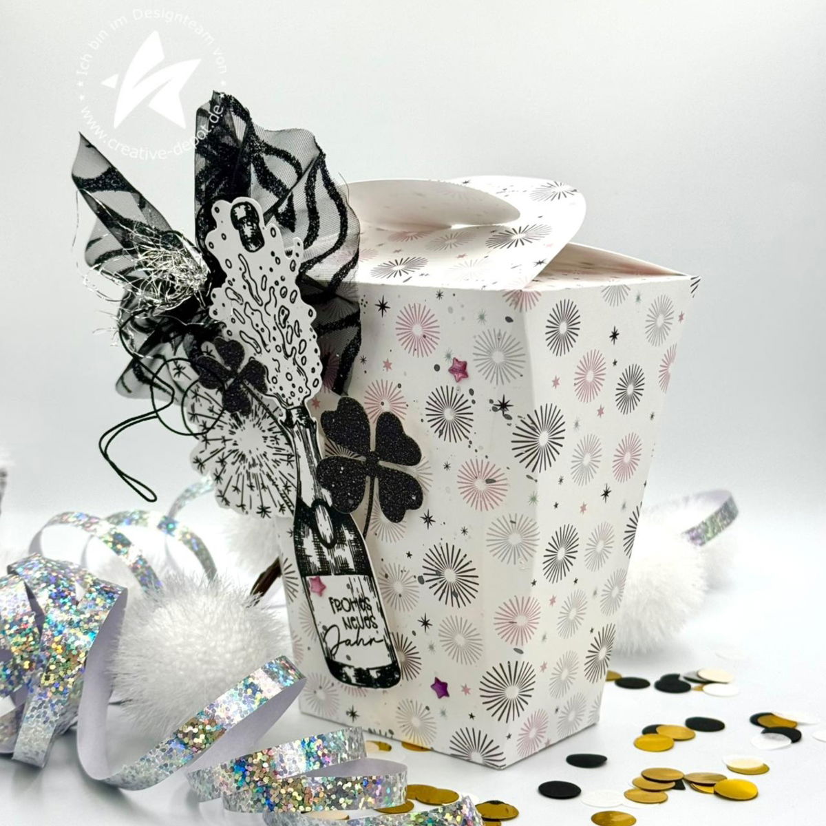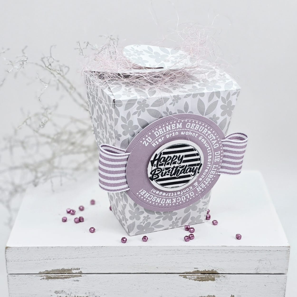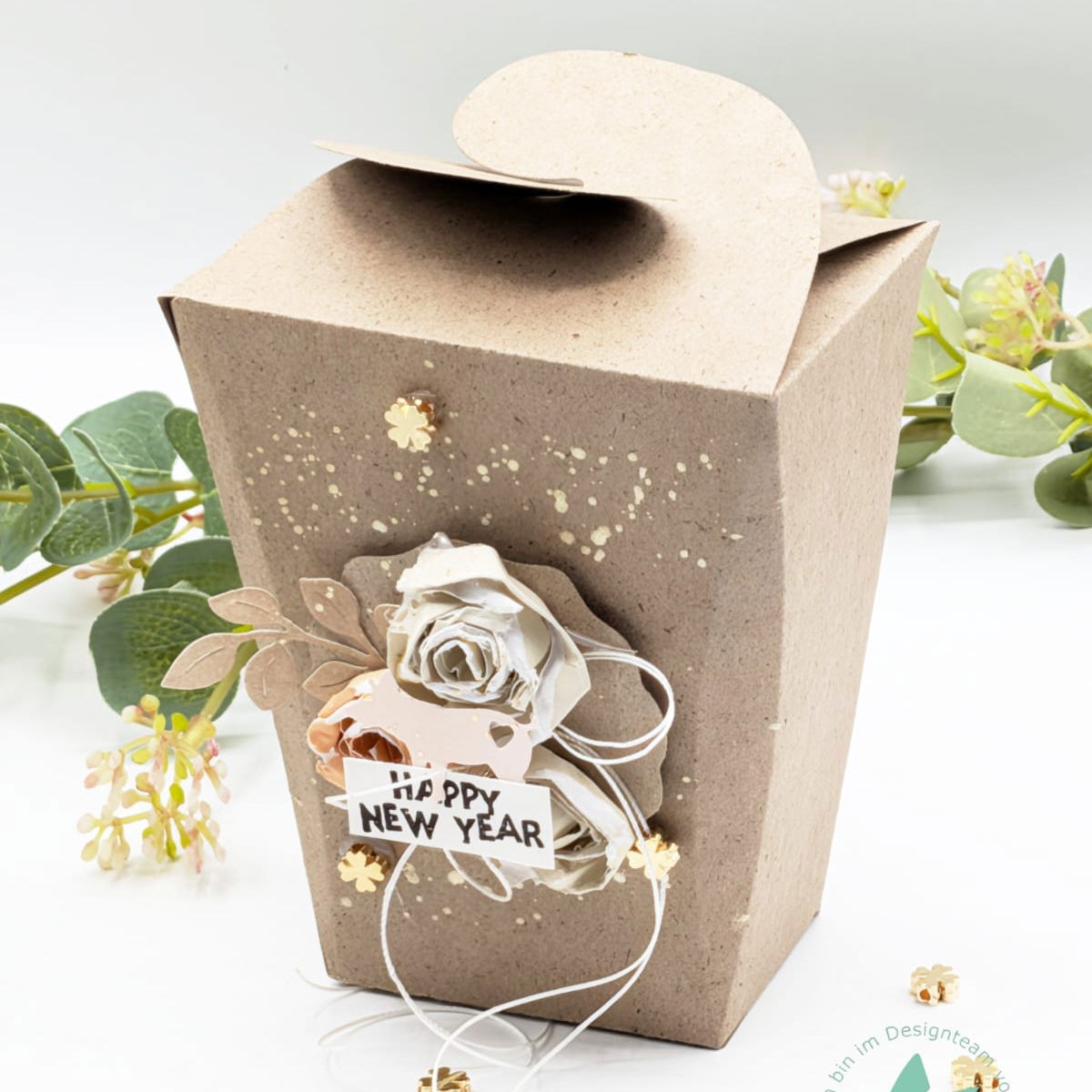 Verwende Metallic-, Struktur- oder Transparentpapier für besonders elegante Effekte – der Hakenverschluss kommt dadurch noch schöner zur Geltung. Verziere die Box zusätzlich mit Schleifen, Anhängern oder Etiketten für einen individuellen Look.