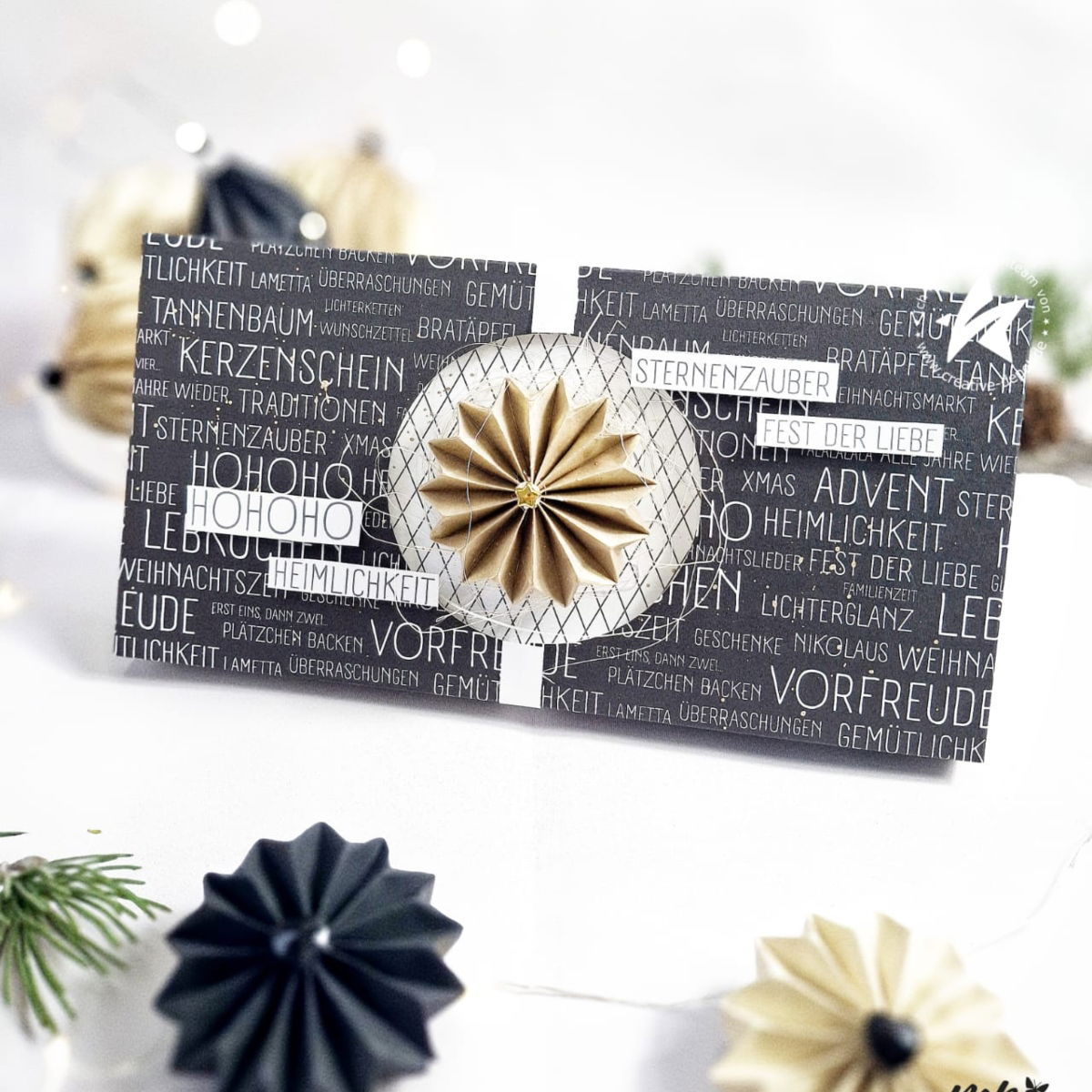 Die Kombination aus vertikalen und diagonalen Linien lässt das Papier beim Auffächern zu einer beeindruckenden Sternform aufgehen.