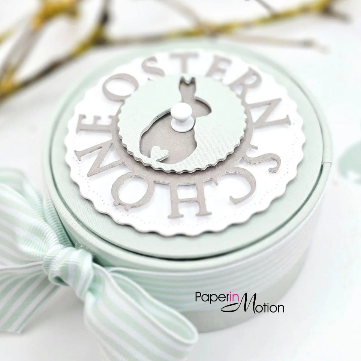 Der Schriftzug „Schöne Ostern“ ist kreisförmig angeordnet und wirkt dadurch super modern, verspielt und gleichzeitig elegant 🖋️✨