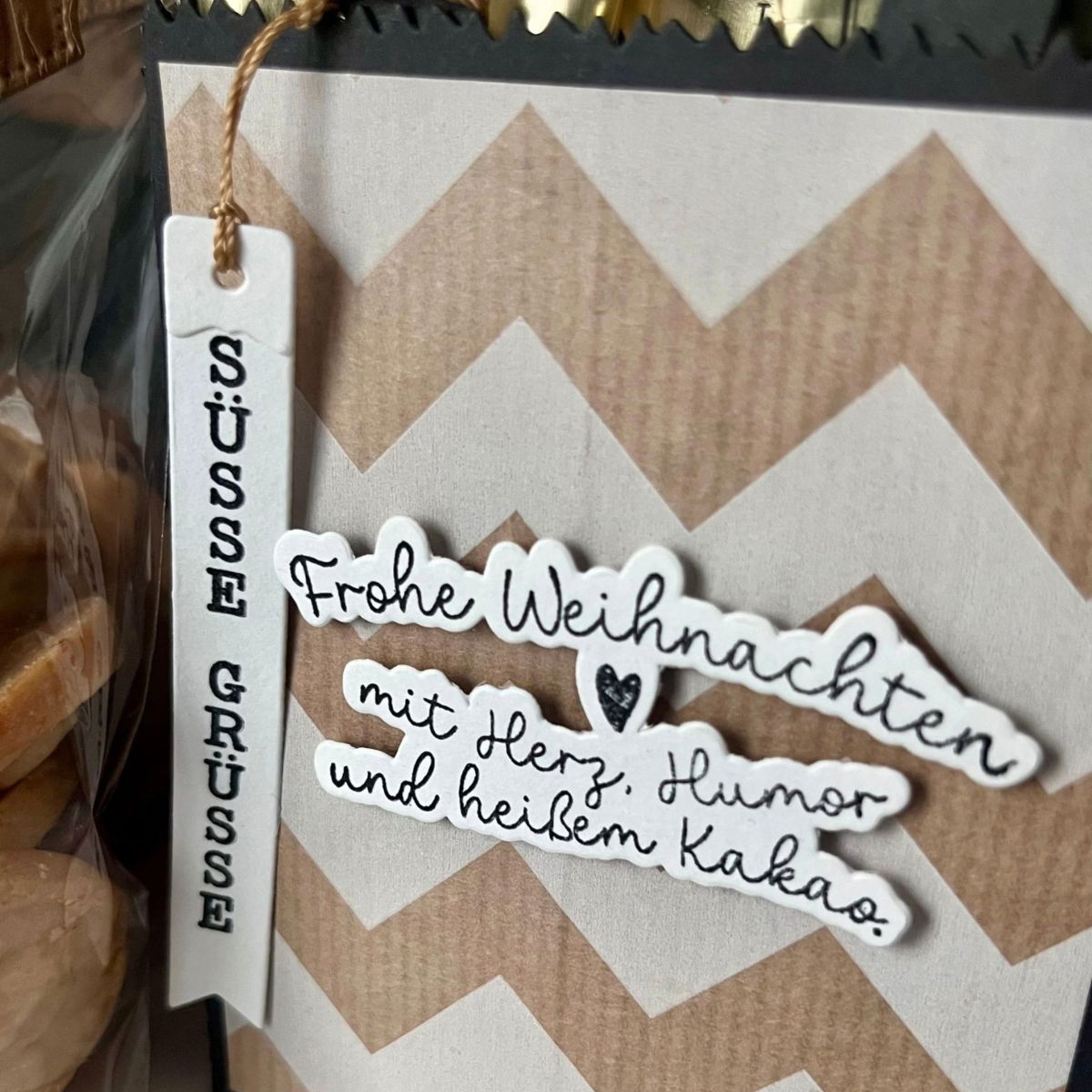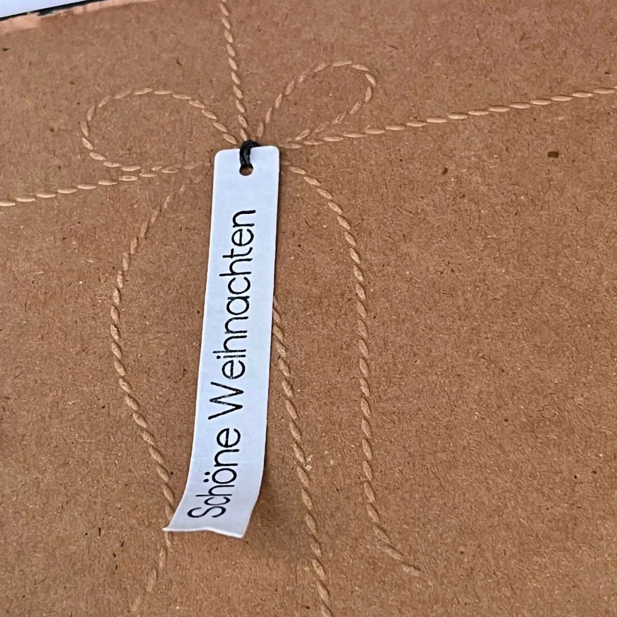 Jedes Tag hat eine kleine Lochung 🕳️, sodass du sie ganz einfach an Verpackungen 🎁, Karten 💌 oder Layouts 📖 anbringen kannst.