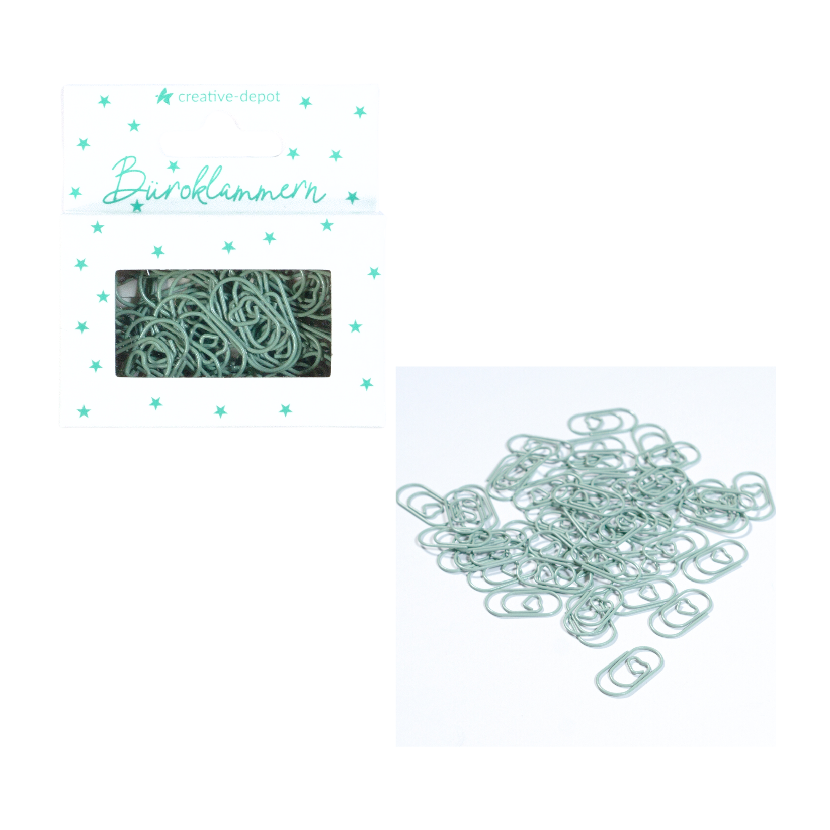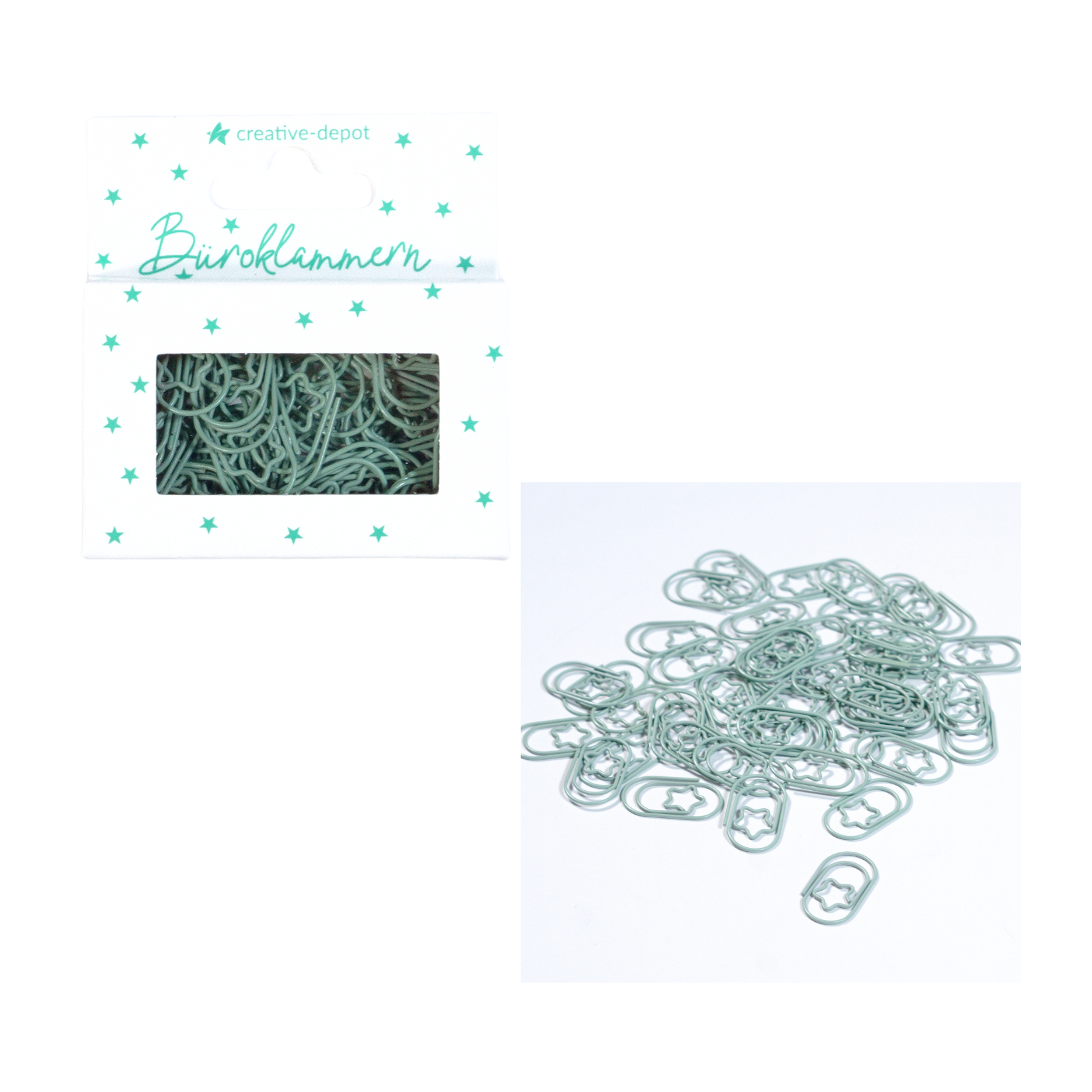 Büroklammer Stern - Vintage Mint - Matt - 50 Stück