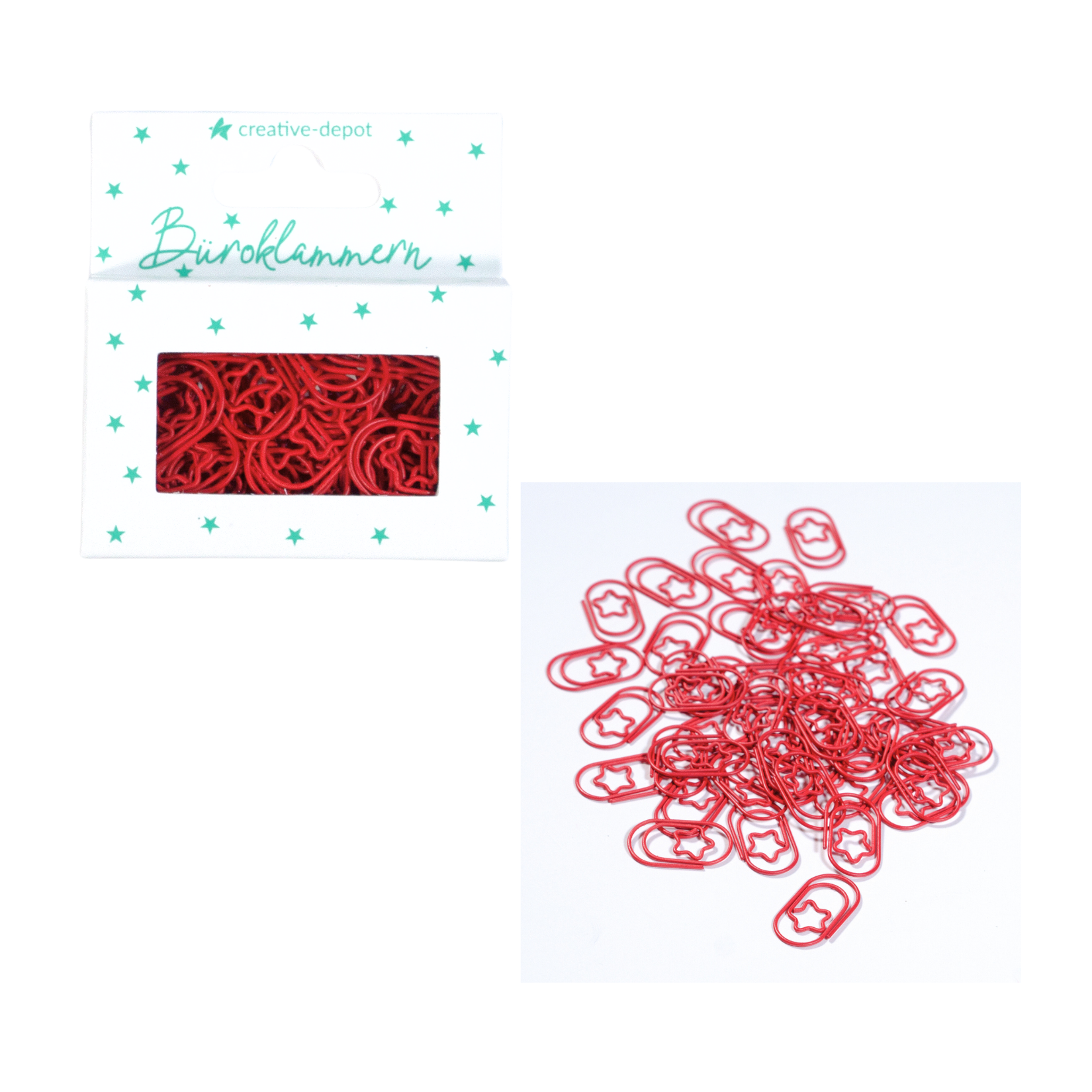 Büroklammer Stern - Weihnachtsrot - Matt - 50 Stück