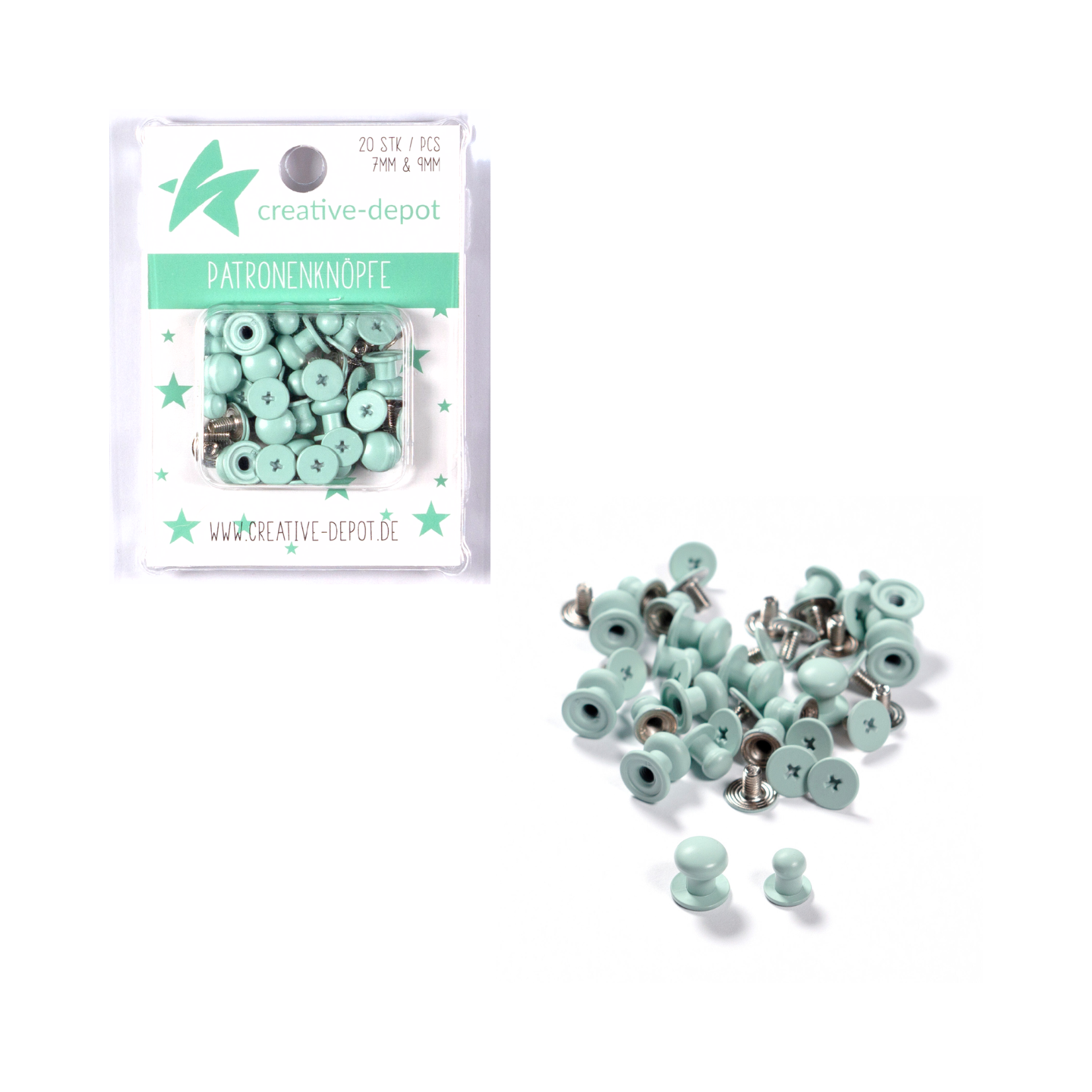 Patronenknopf - Babymint - Matt - Matt - 20 Stück - 7 mm & 9 mm