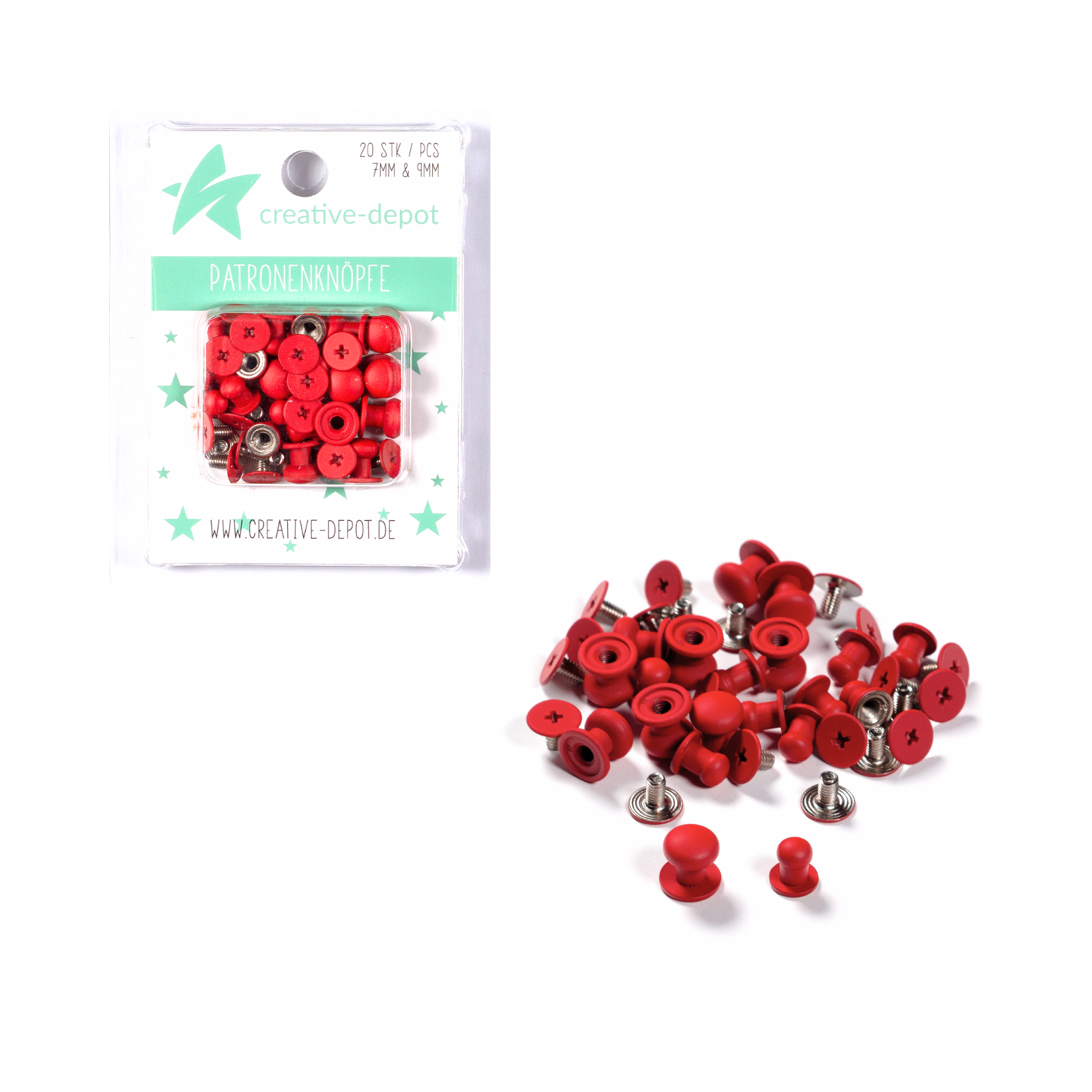 Patronenknopf - Weihnachtsrot - Matt - 20 Stück - 7 mm & 9 mm